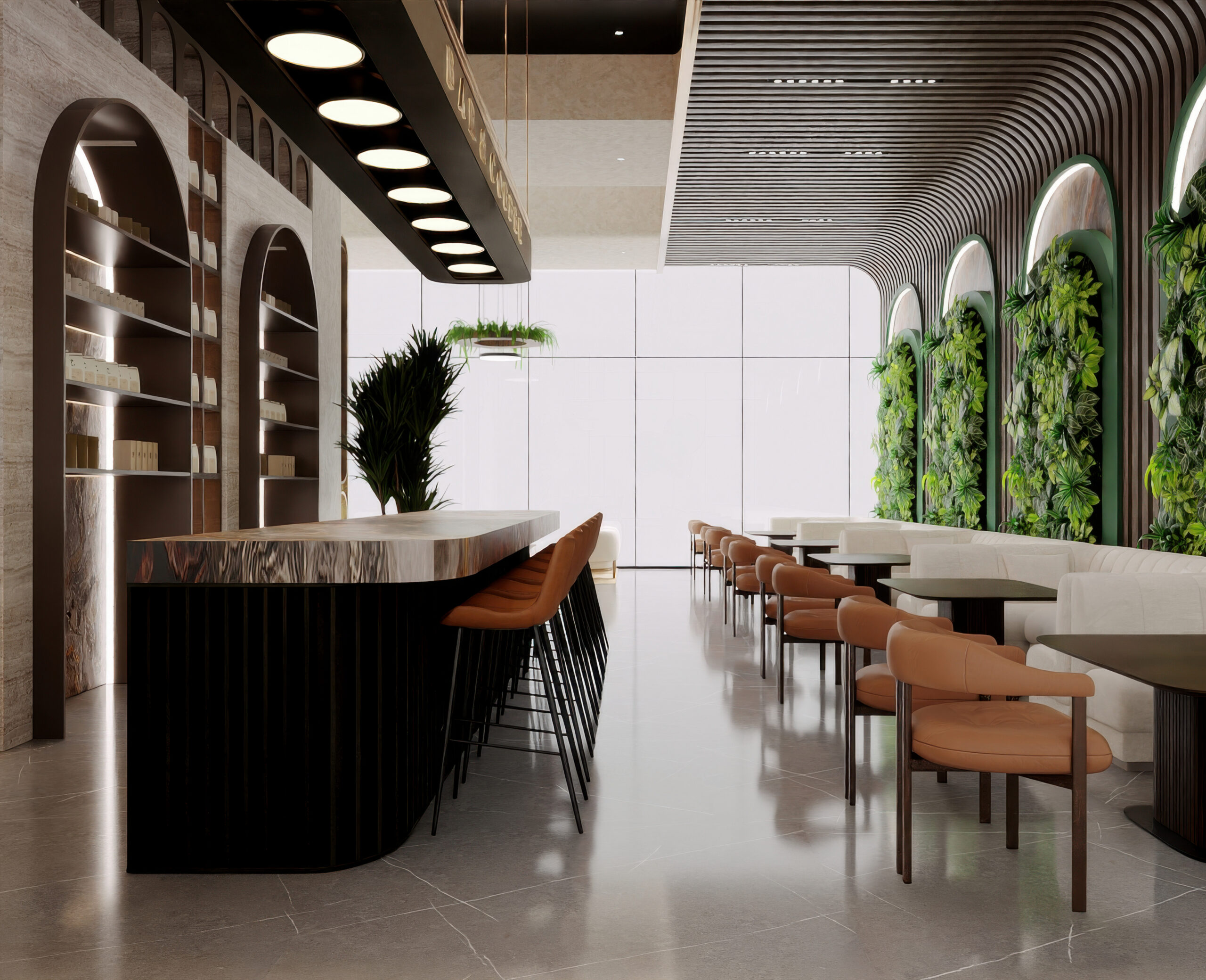 accueillant un restaurant contemporain ouvert toute la journée.