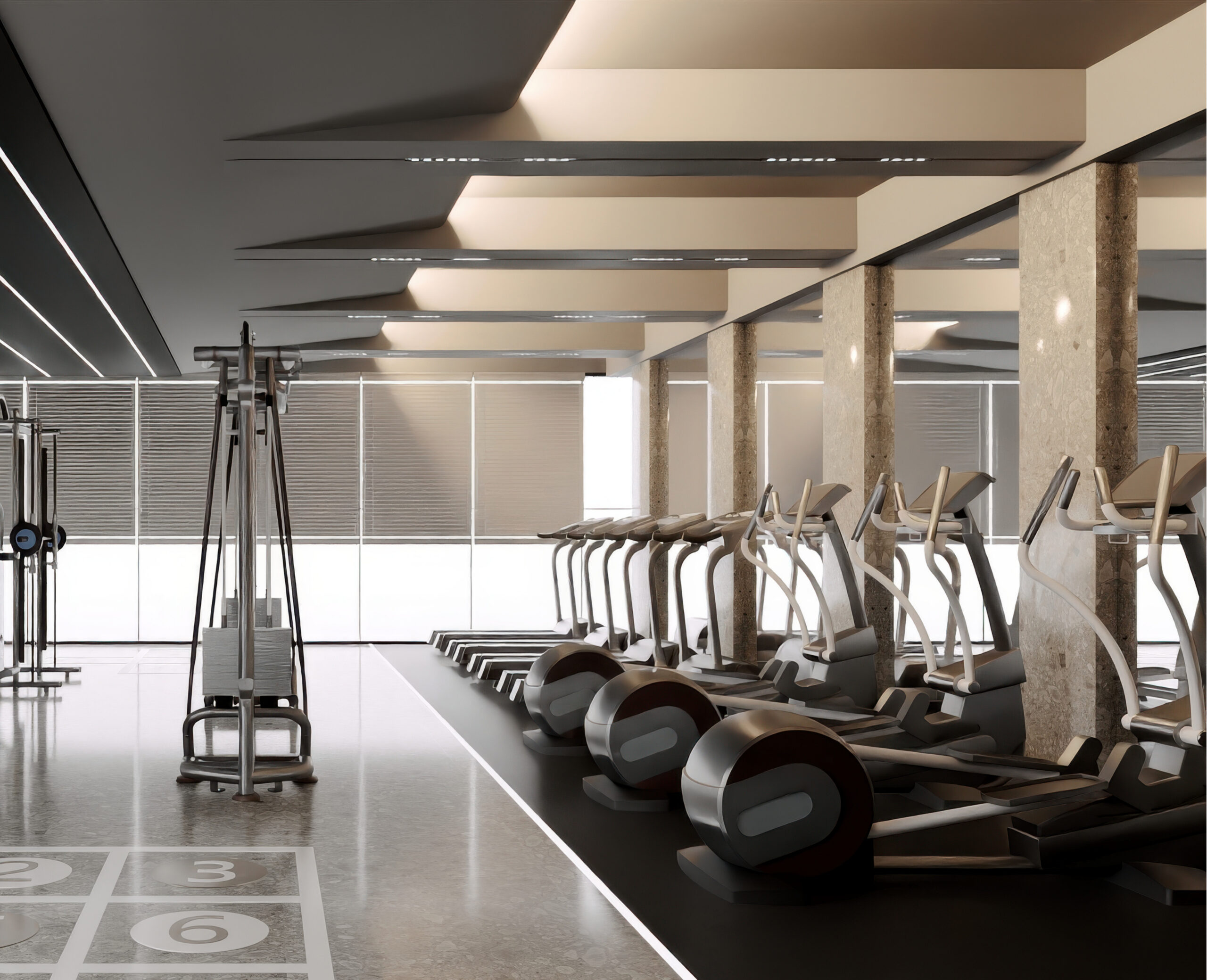 La mezzanine, entièrement dédiée aux commodités, offre aux résidents des